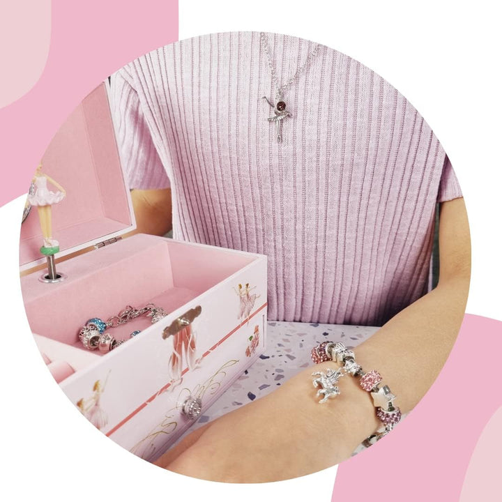 Delight your little one with this charming Ballerina Musical Jewelry Box for Kids! Beautifully designed in soft pink with elegant ballet details, this jewelry box features a twirling ballerina figurine, mirror, and compartments to keep treasures safe and organized.