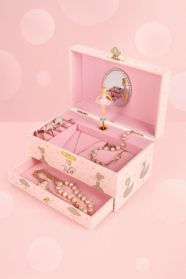 Delight your little one with this charming Ballerina Musical Jewelry Box for Kids! Beautifully designed in soft pink with elegant ballet details, this jewelry box features a twirling ballerina figurine, mirror, and compartments to keep treasures safe and organized.