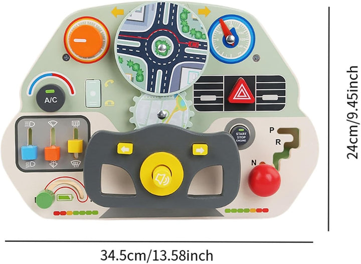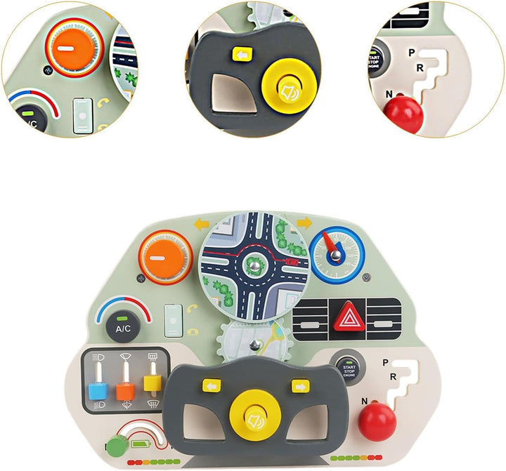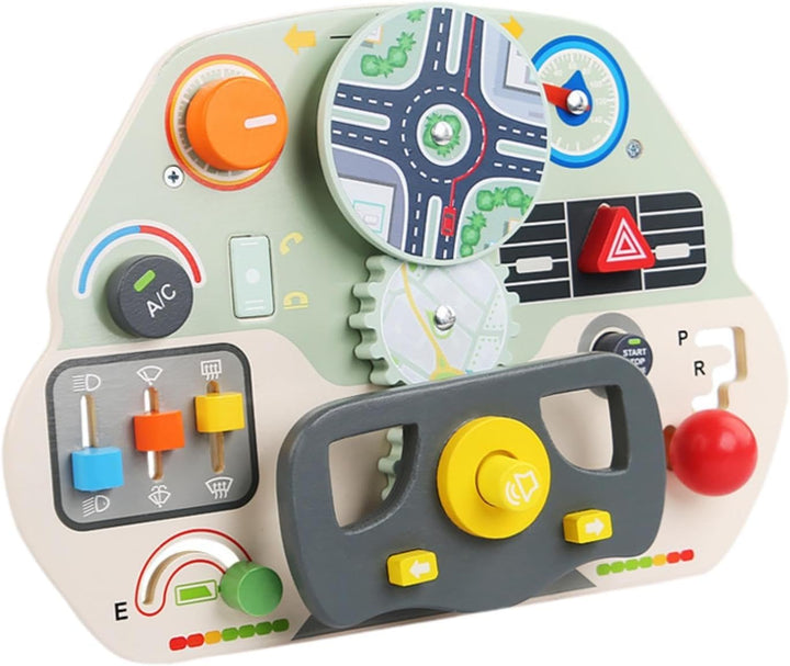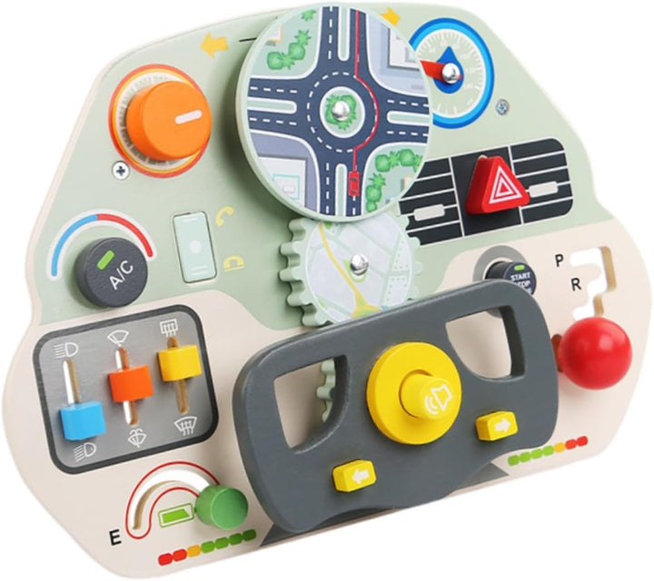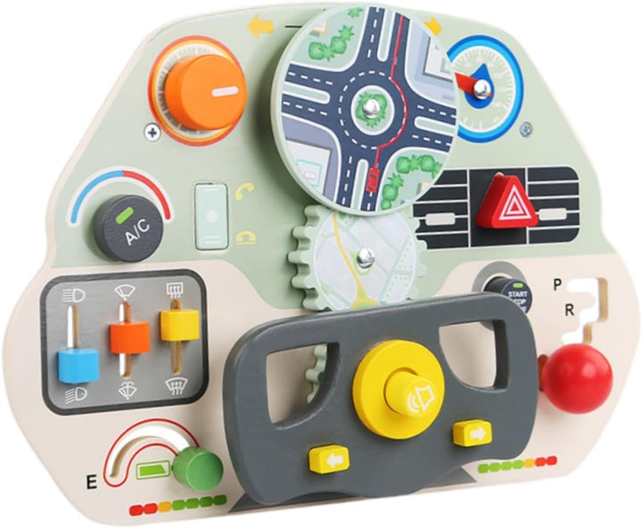 Keep little hands busy and minds engaged with this Busy Board Steering Wheel Toy! Packed with buttons, switches, dials, and a mini driving setup, itβs designed to spark curiosity and support early learning through play.